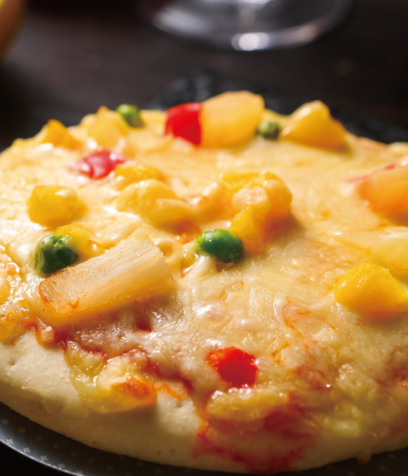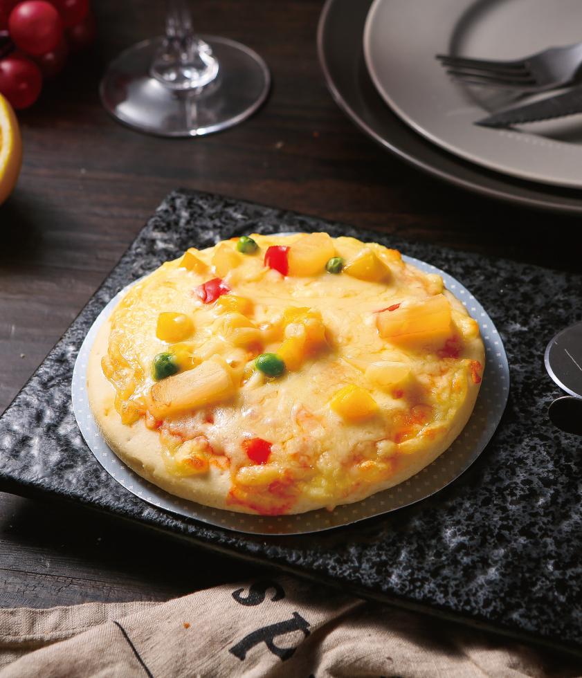 產(chǎn)品介紹:熱帶風暴水果匹薩——蜜桃、菠蘿、蒟蒻等等各種鮮脆多汁的水果,與番茄醬的酸甜、乳酪的濃郁交織在一起,交錯的甜味和豐富營養(yǎng)帶來幸福元氣的早餐新概念。 工藝:半制成品 規(guī)格(g):100g 包裝規(guī)格:1片/盒 箱規(guī):40盒/箱