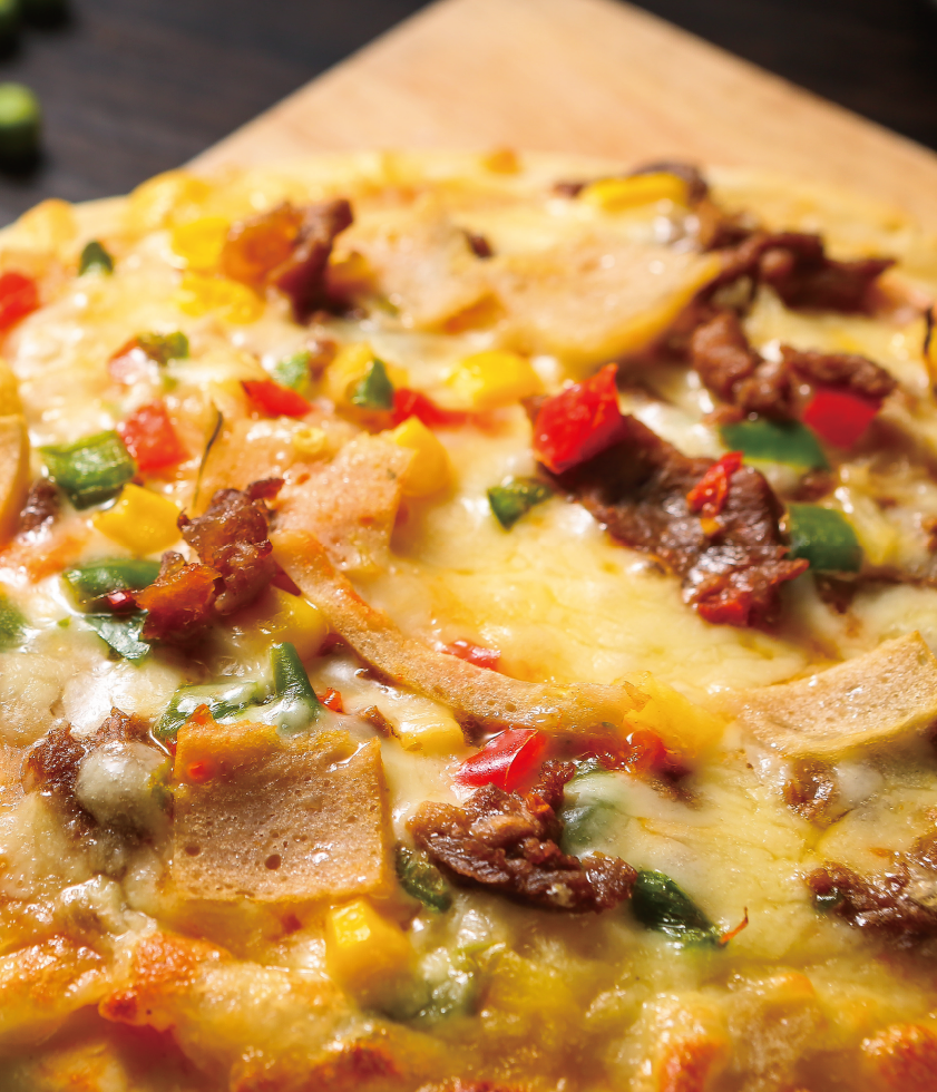 產(chǎn)品介紹:加勒比海盜匹薩——獨特的加勒比風(fēng)味牛肉,經(jīng)由迷人的混合香料腌漬,是加勒比海地區(qū)最為知名的風(fēng)味美食之一,搭配色彩艷麗的午餐肉、菠蘿、玉米、青椒、紅椒,在番茄醬和芝士的混合中,透露出難以抵擋的南美風(fēng)情。