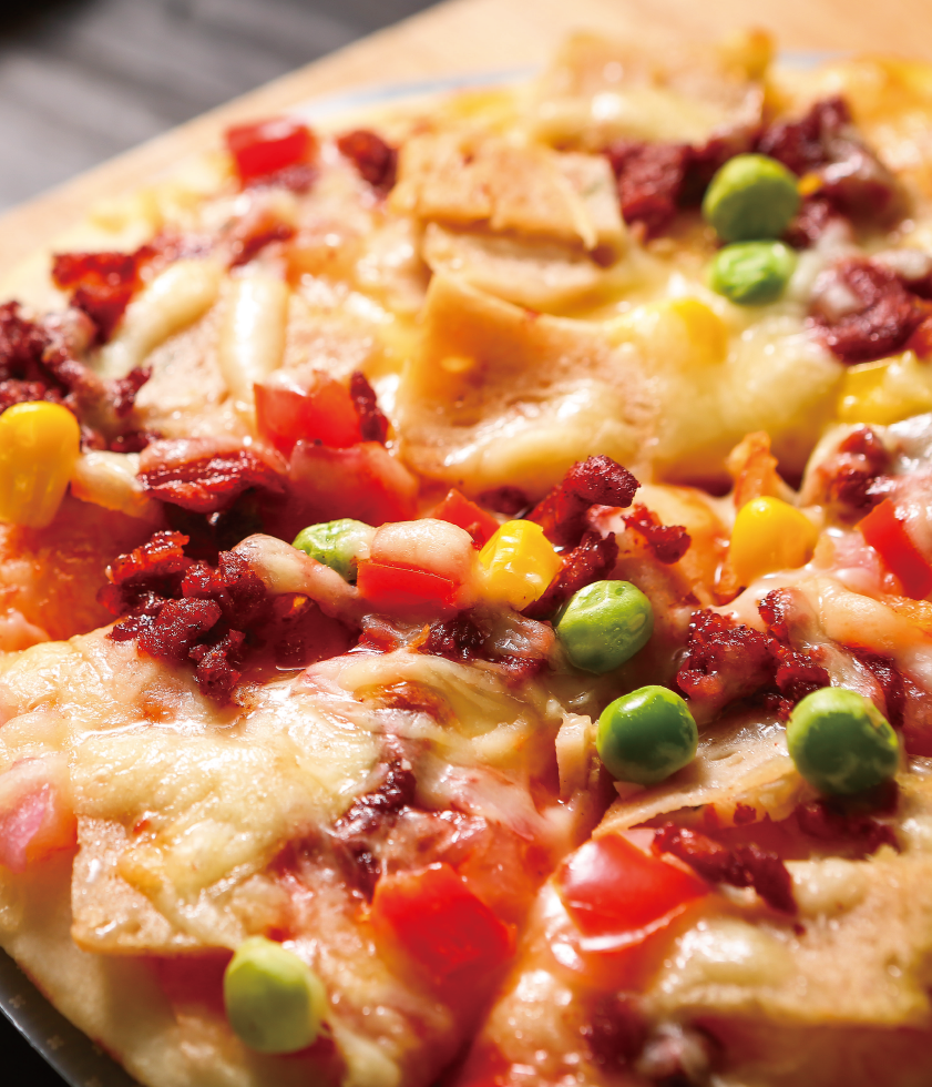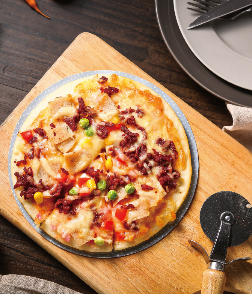 產(chǎn)品介紹:美式烤肉匹薩——燒烤與匹薩的完美結(jié)合,充滿美式風(fēng)情的烤肉,搭配午餐肉、青豆、洋蔥、玉米、紅椒,佐以酸甜可口的番茄醬,奶香濃郁的芝士,一邊品嘗美式美食,一邊聊著美式幽默,把鴨梨神馬的統(tǒng)統(tǒng)拋到九霄云外。