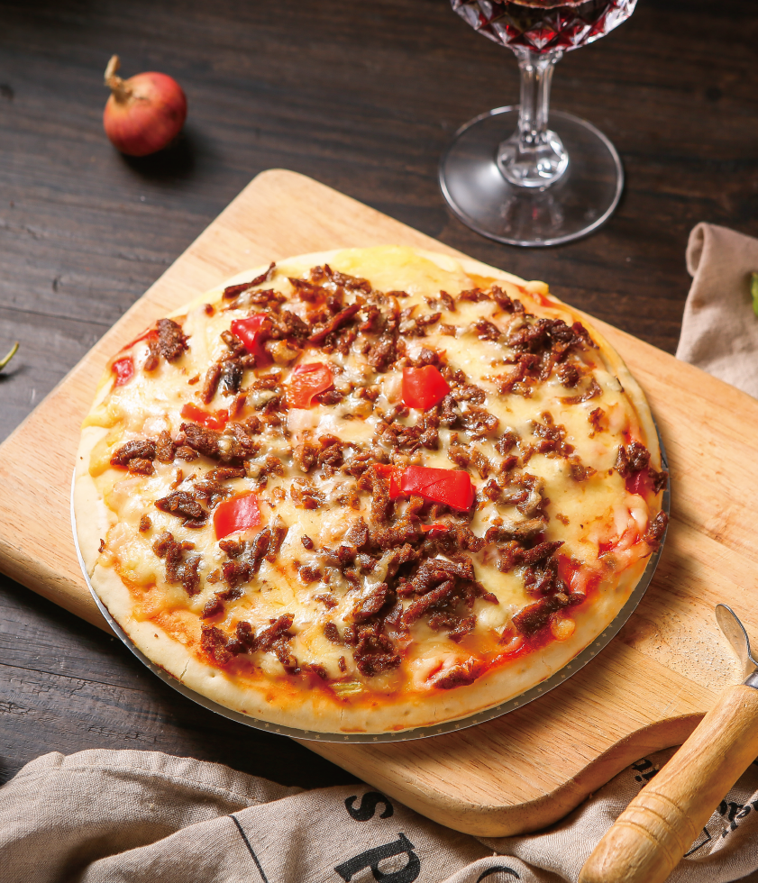 產(chǎn)品介紹:西部牛仔風(fēng)情匹薩——說到西部牛仔最愛的美味,非牛肉莫屬!這群18到19世紀(jì)在美國西部廣袤土地上的熱情無畏的開拓者,是美國歷史上開發(fā)西部的先鋒。這款以牛肉為主料,西部風(fēng)情調(diào)味的披薩,配以大杯的啤酒,也許能讓您感受到西部牛仔們的那種冒險(xiǎn)和吃苦耐勞的寶貴精神。酥松的超薄餅底是正統(tǒng)的意大利制法。
