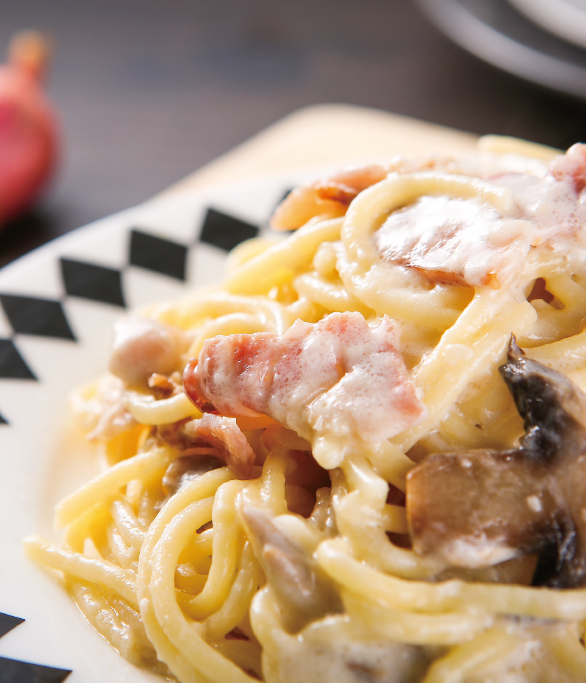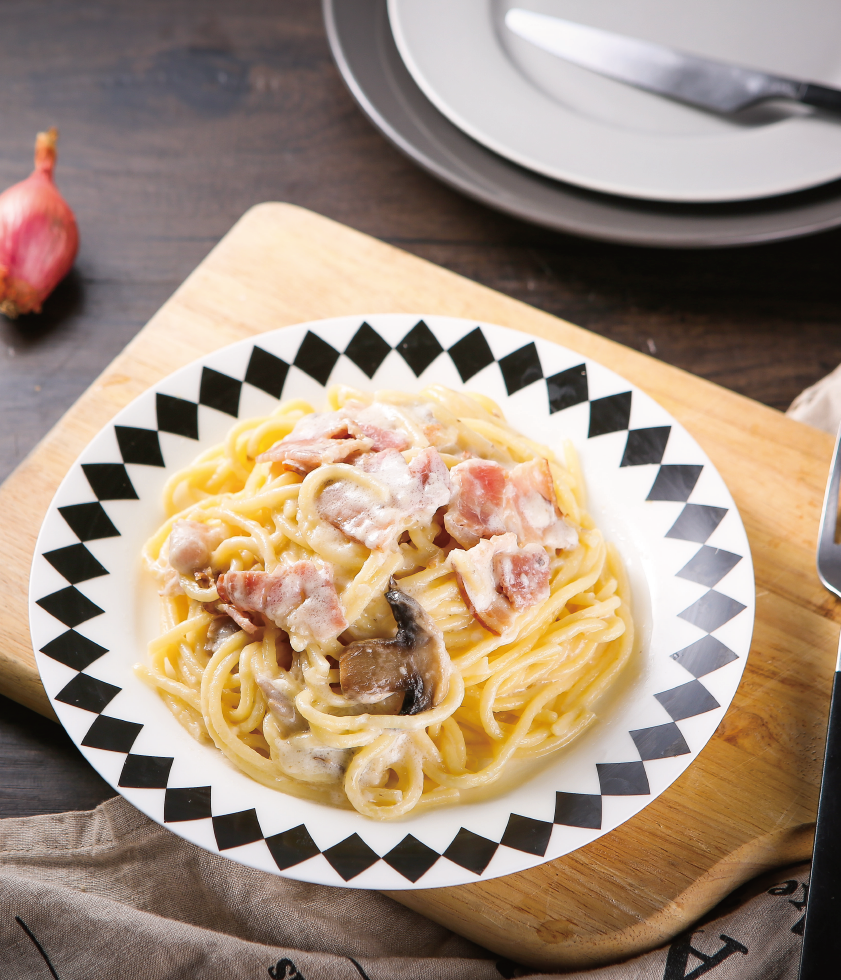 奶油醬也就是一般說(shuō)的“白醬”,是搭配意大利面的紅、白、青、黑四大醬料之一,以奶油作為主要原料,搭配了新鮮的培根和好吃的蘑菇,口味醇厚,奶香濃郁!